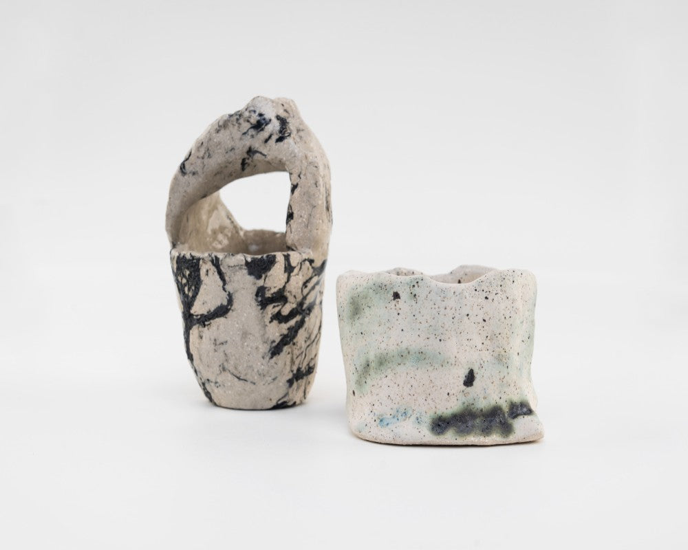 La utilización del esmalte re-quemado y la estopa como elementos de textura, la cerámica protagonista, las formas: intuitivas y gestuales. "