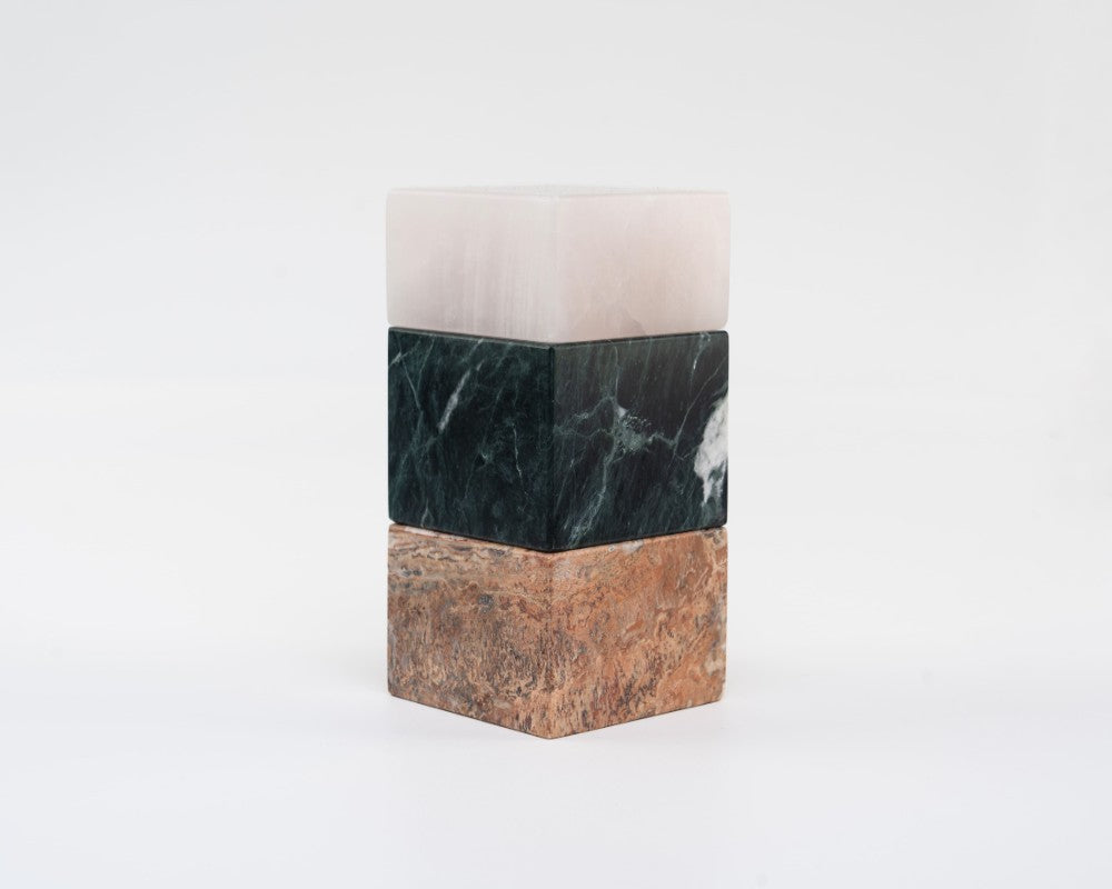 """MARTHA"" es parte de una serie de morteros elaborados con piezas apilables de piedra. Inspirada en las tendencias de algunos materiales de los años 70 y 80, especialmente en torno al mármol y la piedra, esta serie evoca recuerdos influenciados por la arquitectura y la música que rodeaban mi infancia.