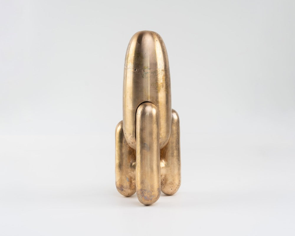 Shaken not stirred toma como referencia la forma de un shaker de martinis, es una pieza de escultura para la cocina. Fabricado en bronce fundido y torneado, evoca el diseño clásico de los shakers de cócteles, fusionando funcionalidad y arte decorativo. Su presencia en la cocina no solo destaca por su utilidad, sino también por su valor estético como una obra artesanal y conceptual.