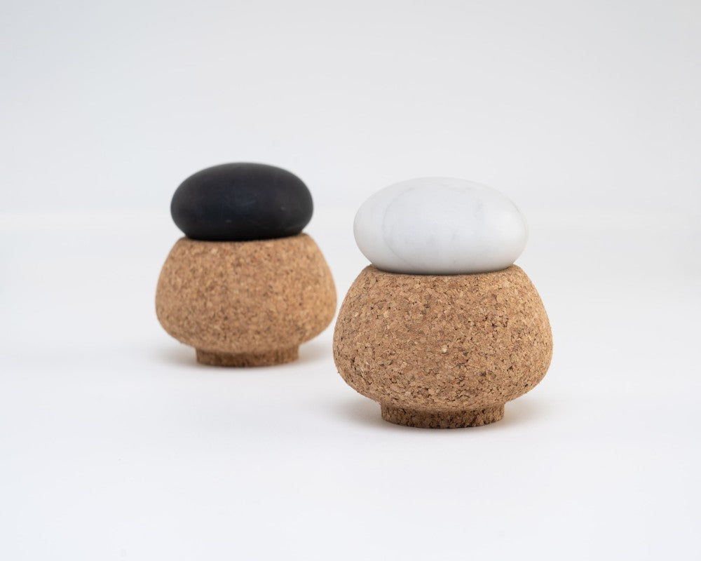 La elección del corcho como material para el recipiente sirve una funcionalidad específica: absorber la humedad de la sal, y fue modelado basado vagamente en aquellos milenarios recipientes cerámicos para briquetage y silos subterráneos, simultáneamente creando un lenguaje modular apilable de volúmenes en caso de querer utilizarlos para distintos condimentos.